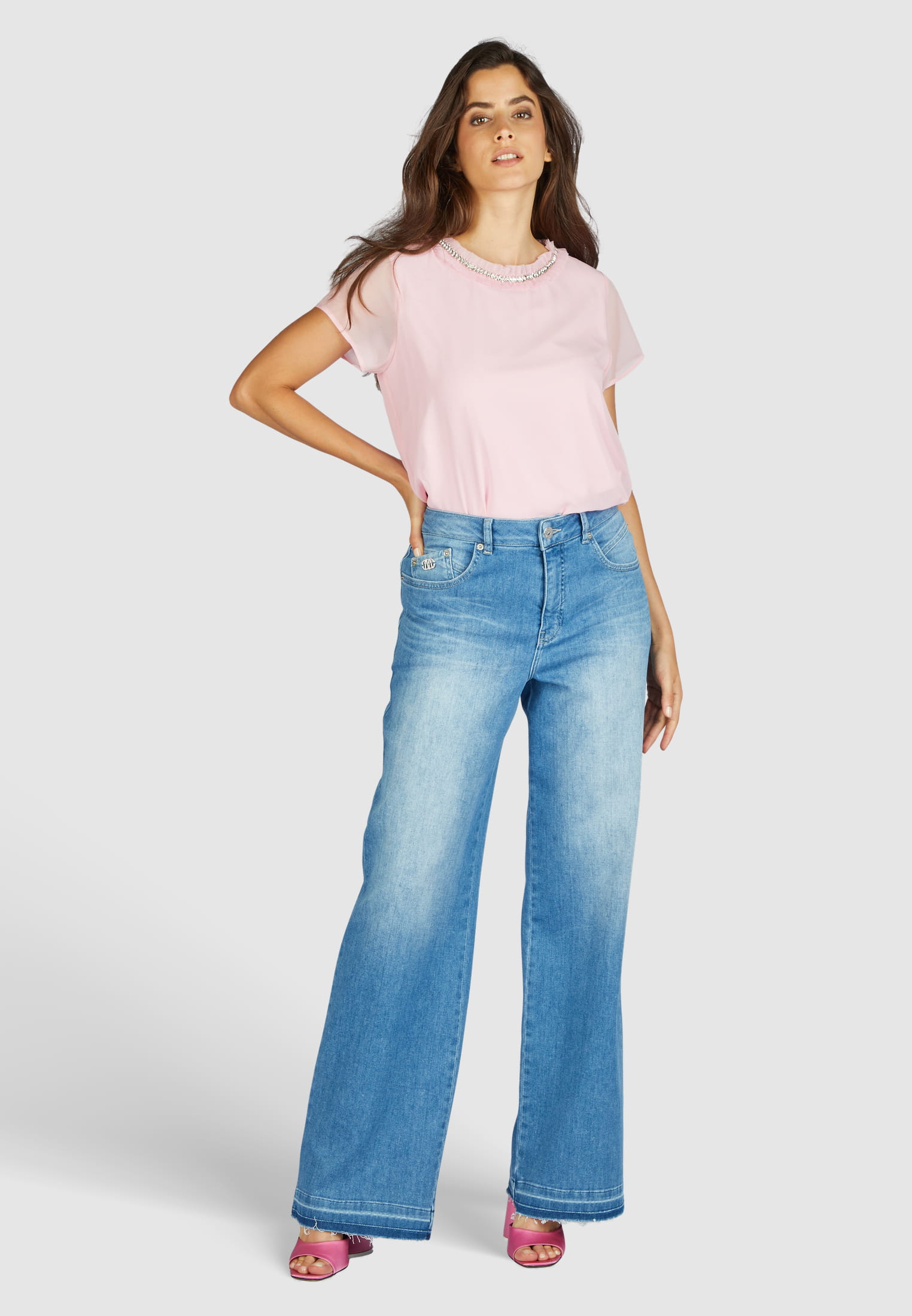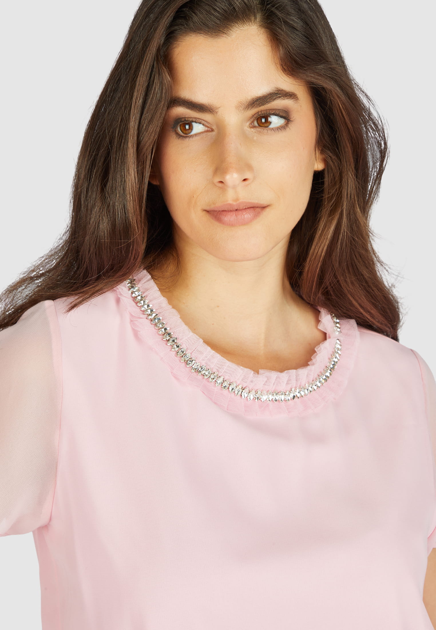 Blusenshirt mit dekorativer Strass-Stickerei
