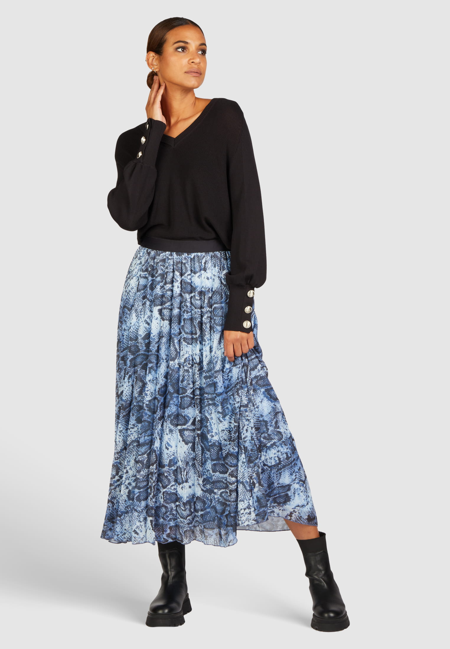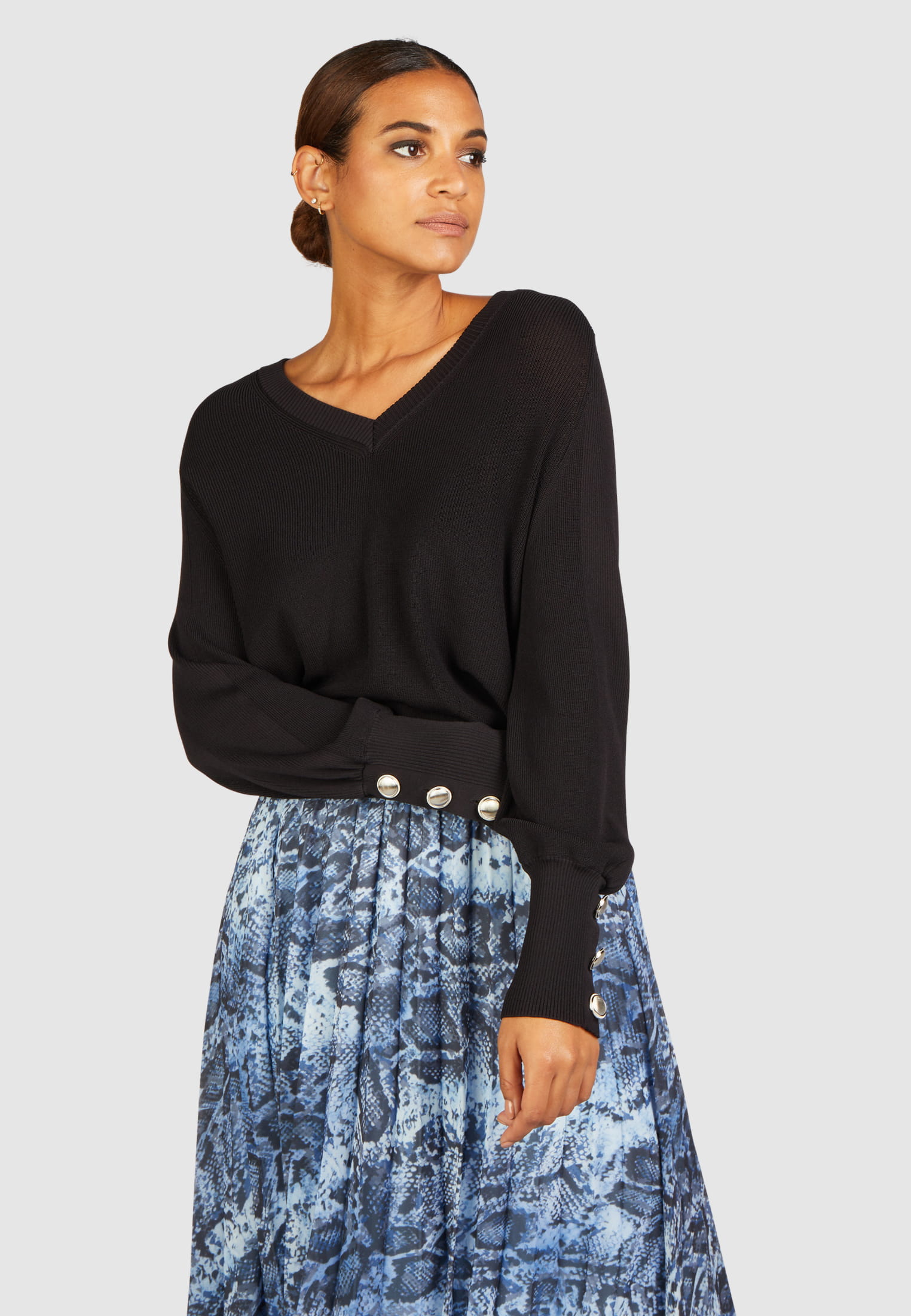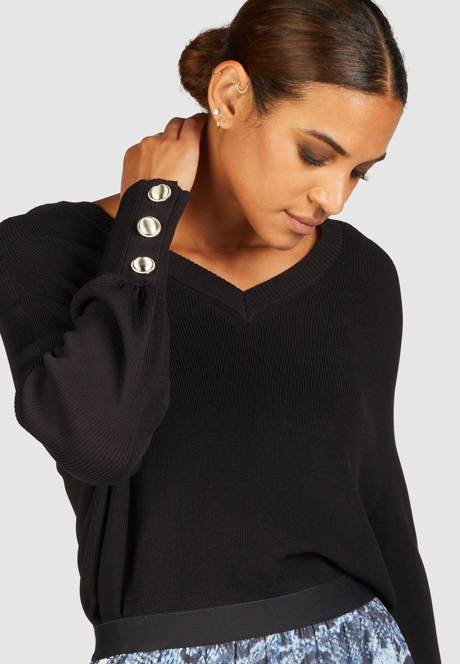 V-Ausschnitt-Pullover mit Knopfdetail