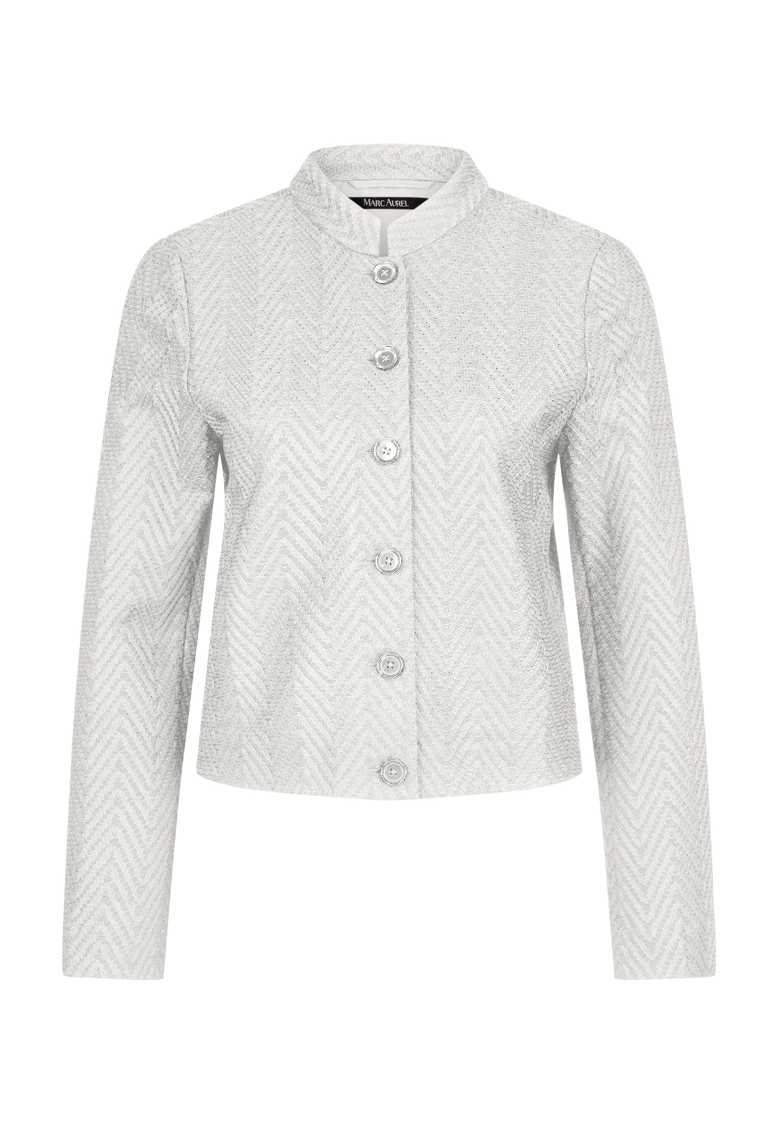 Edel gebondete Zackenspitze mit Baumwollrückseite kreiert den zeitlos-eleganten Look dieser Indoor-Jacke. Das Design im schmalen Boxy-Style, mit Stehkragen und klassischer Knopfleiste ist klar strukturiert und passt so zu jedem Anlass.