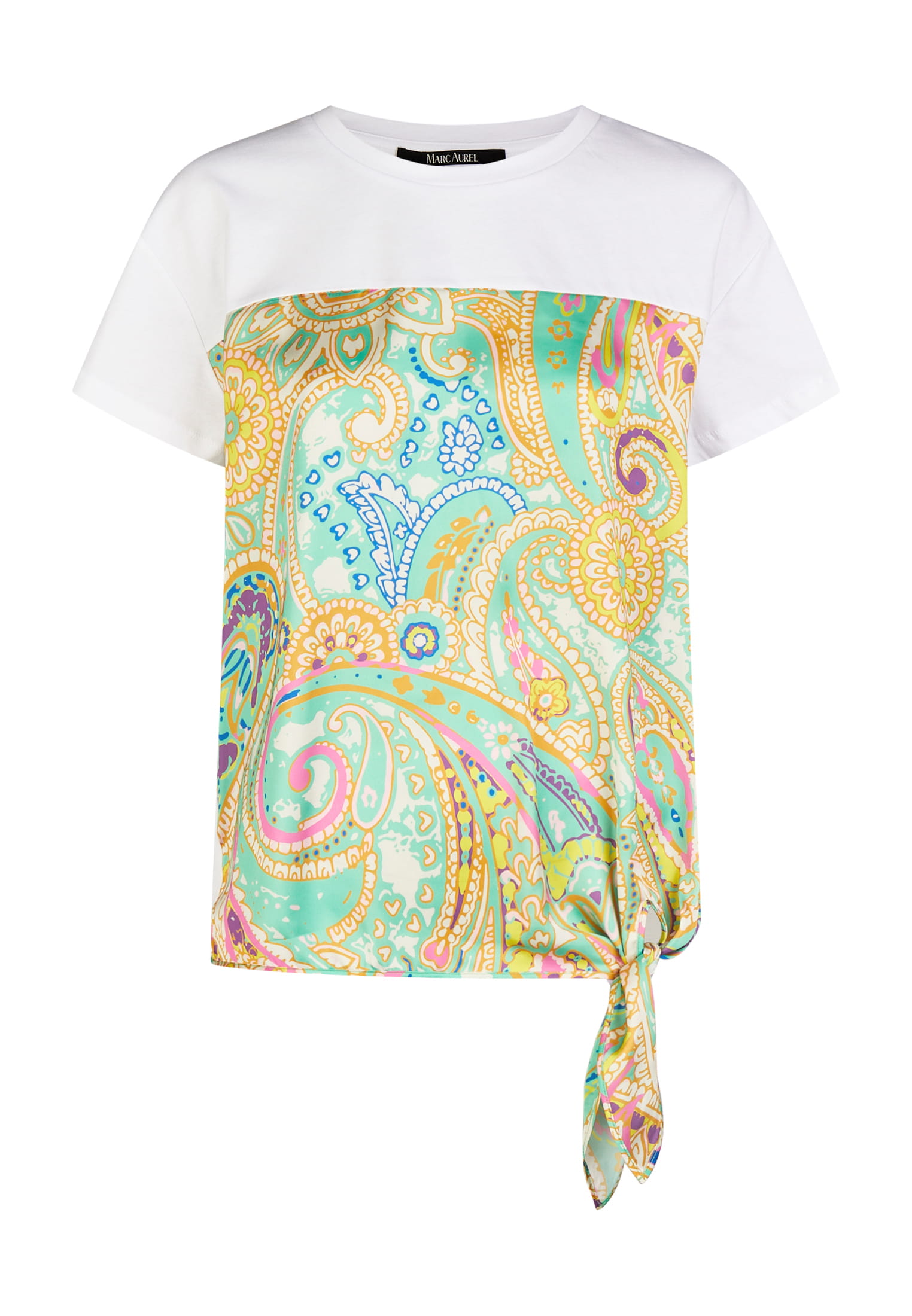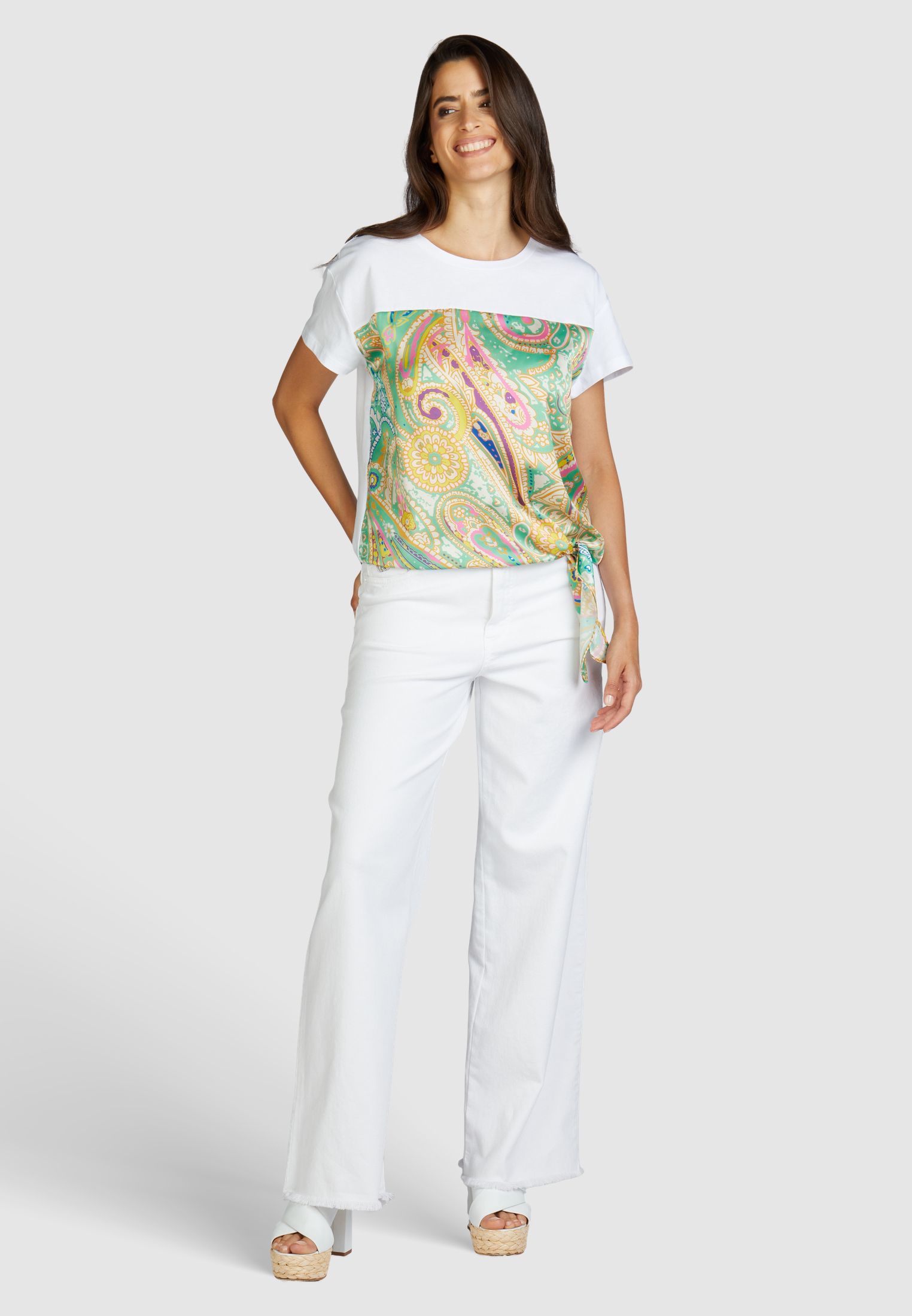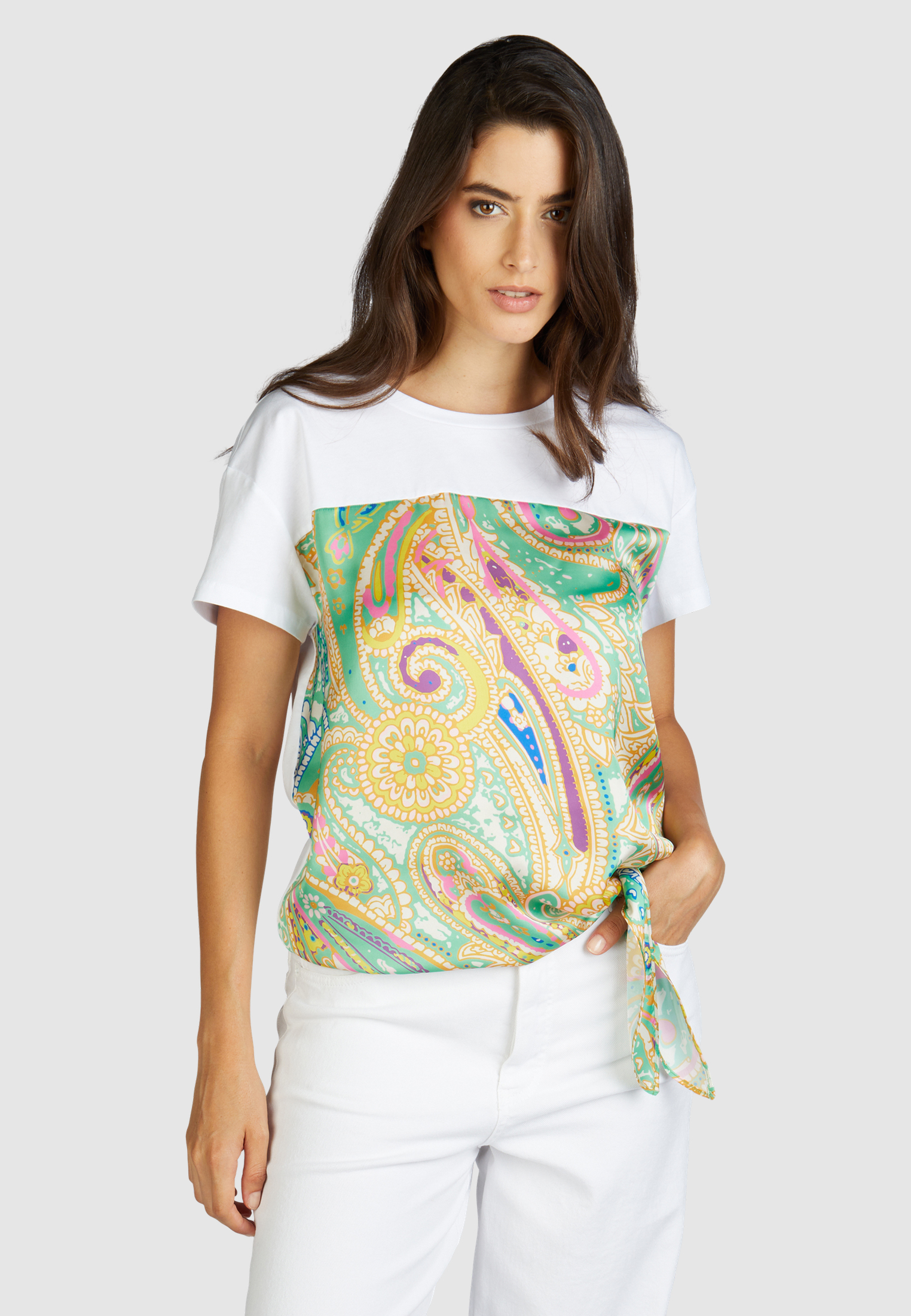 Die klare Strukturierung, der aufwendige Paisley-Print auf der Vorderseite sowie das Knotendetail geben diesem T-Shirt seinen eleganten Look. Das T-Shirt ist lässig weit geschnitten und wurde aus Baumwolle der Better Cotton Initiative gefertigt. Der bedruckte Patch besteht aus edlem Viskosesatin.